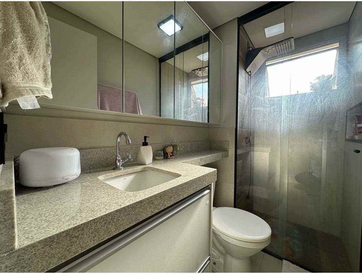Banheiro moderno com ótimo acabamento.