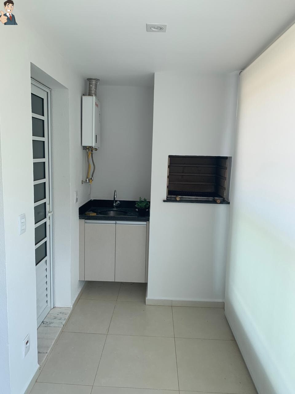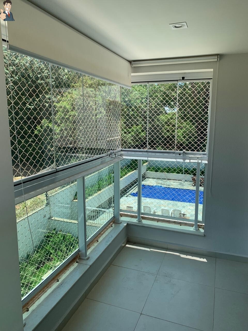 -Área gourmet com sacada fechada em vidros e cortinas