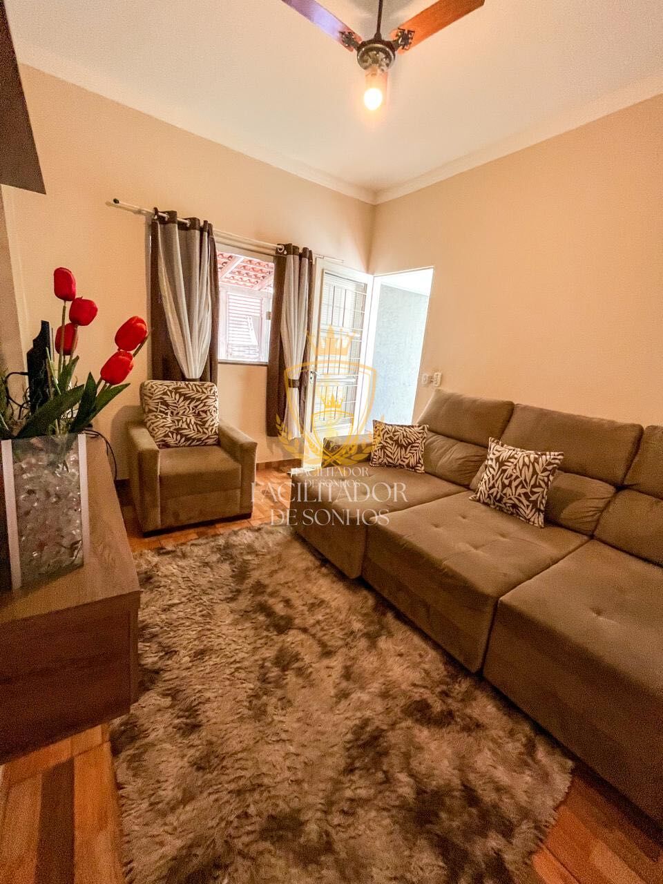 A residência possui 172 m² de construção em um terreno de 250 m², oferecendo ambientes amplos e bem distribuídos. Conta com três dormitórios, sala de estar confortável, cozinha funcional e banheiro social.