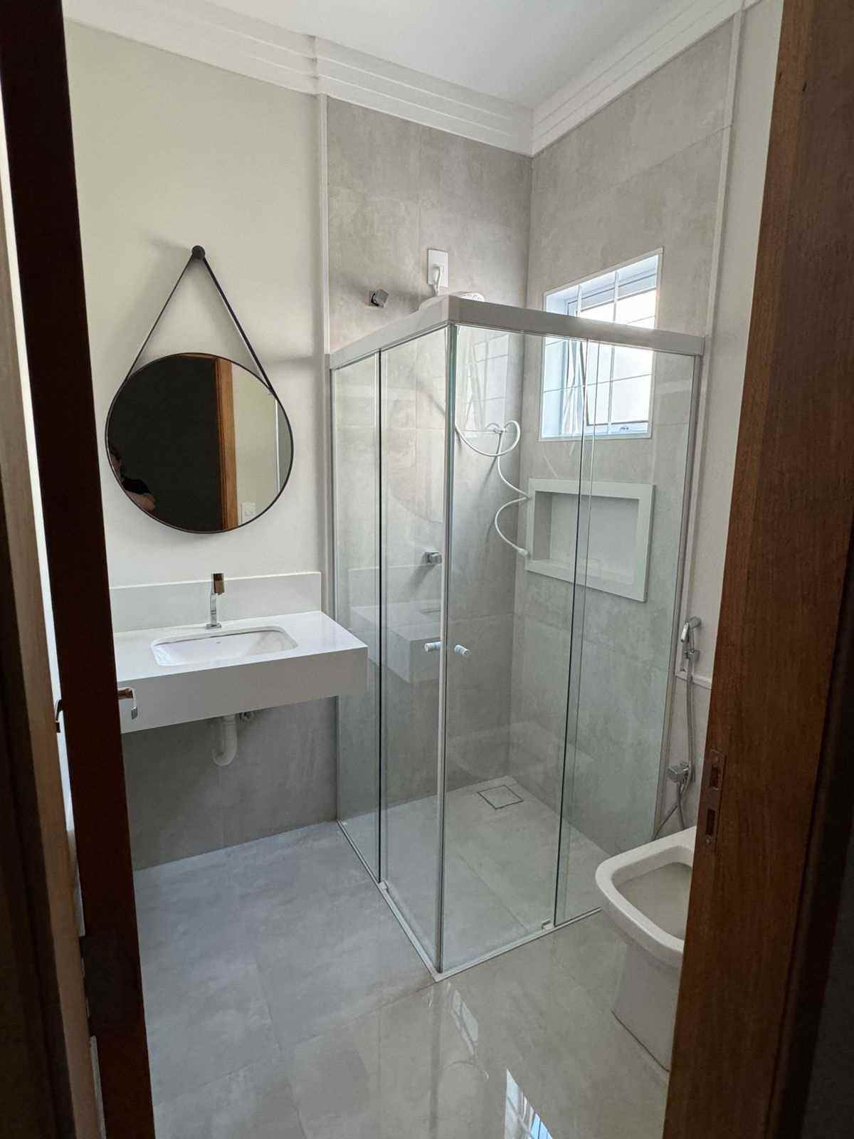 - Banheiro em granito branco com louças Deca