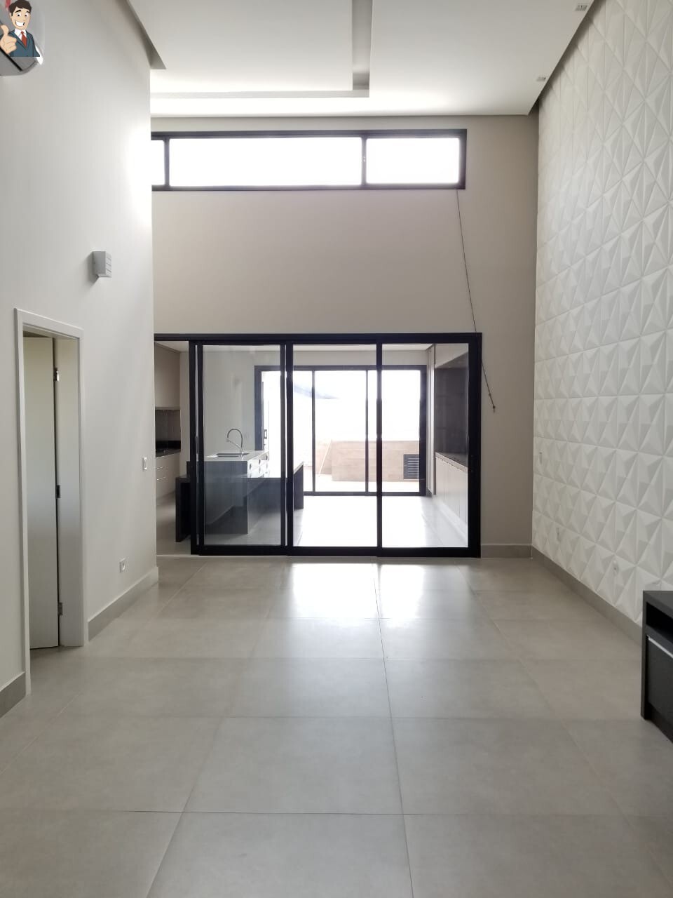 1 Sala dois ambientes com painel e pé direito alto