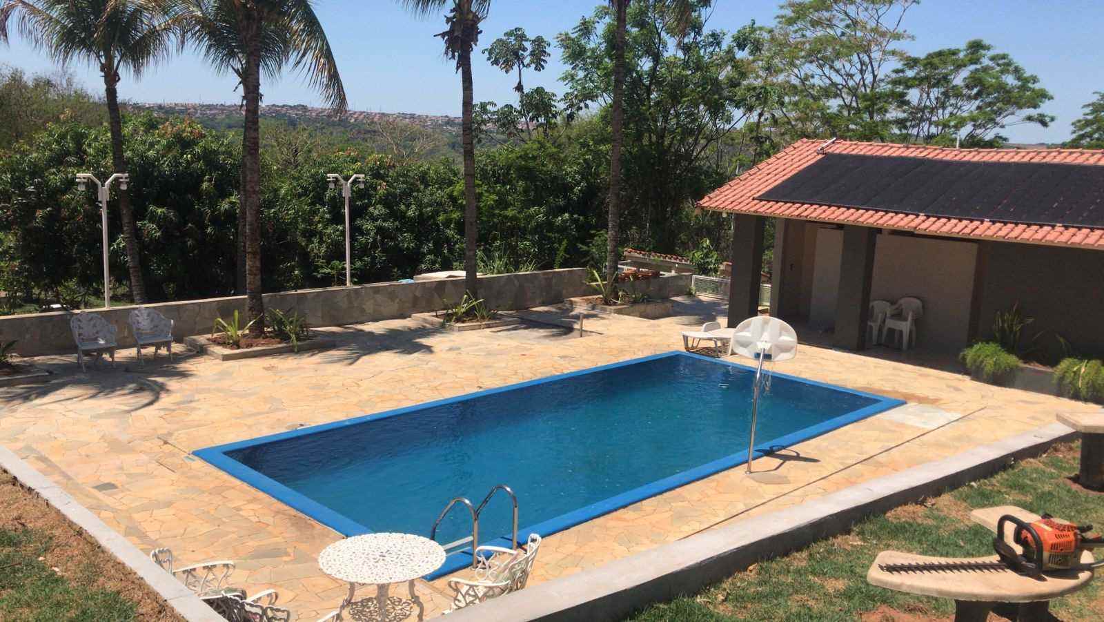 Energia fotovoltaica contando com 20 placas para alimentação de todo imóvel.